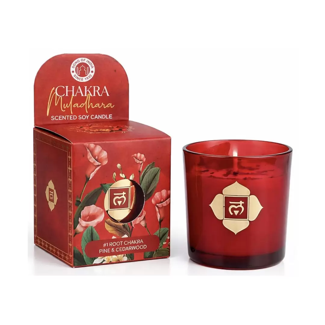 La bougie Pin & Cèdre – Chakra Racine de Song of India est une bougie parfumée naturelle inspirée de la tradition ayurvédique et de l’univers énergétique des chakras. Fabriquée à partir de cire de soja naturelle et enrichie en huiles essentielles de pin et de bois de cèdre, elle diffuse un parfum profond et boisé aux notes terreuses, parfait pour retrouver stabilité et ancrage.